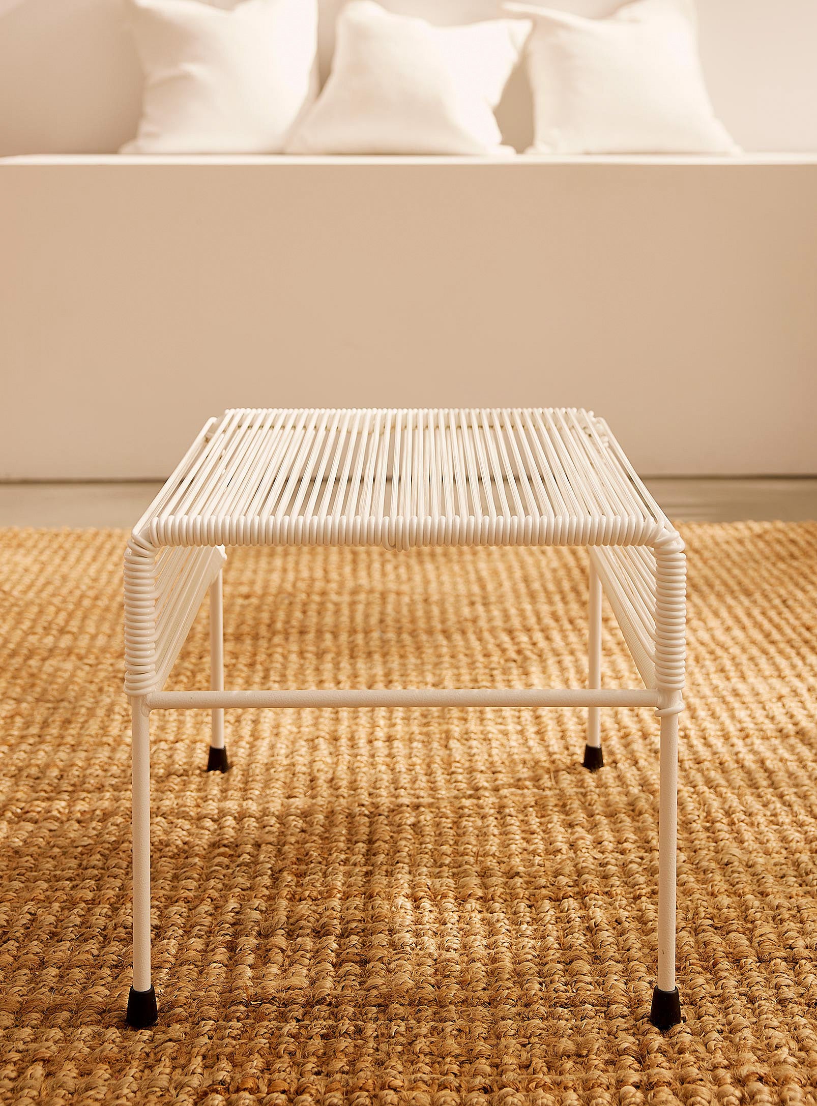 The Atom Ottoman is definitely big on style. Not only do they offer an airy spot to put up your feet, but you can use them on their own as a side table with an optional glass top or put two together to make a super cool coffee table base. With its durable powder coated steel frame and ultra durable colorfast UV-resistant woven vinyl cord, this little beauty is available in 21 vinyl cord colors and 4 frame finishes. It’s also weatherproof, easy to clean and perfect for both residential and commercial applications. Note: Chrome and copper frame finishes are suitable for indoor use only. Proudly handmade in Toronto.