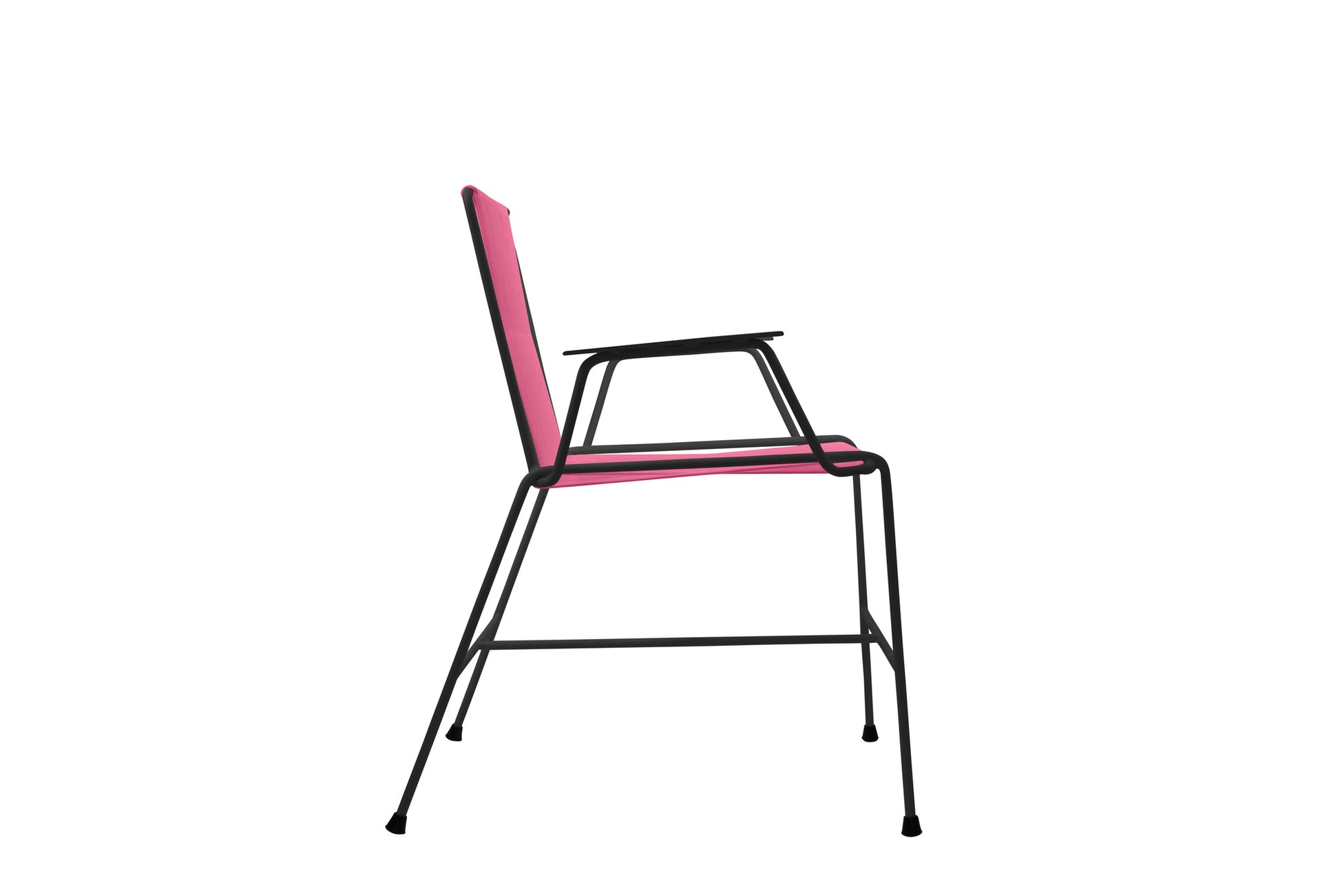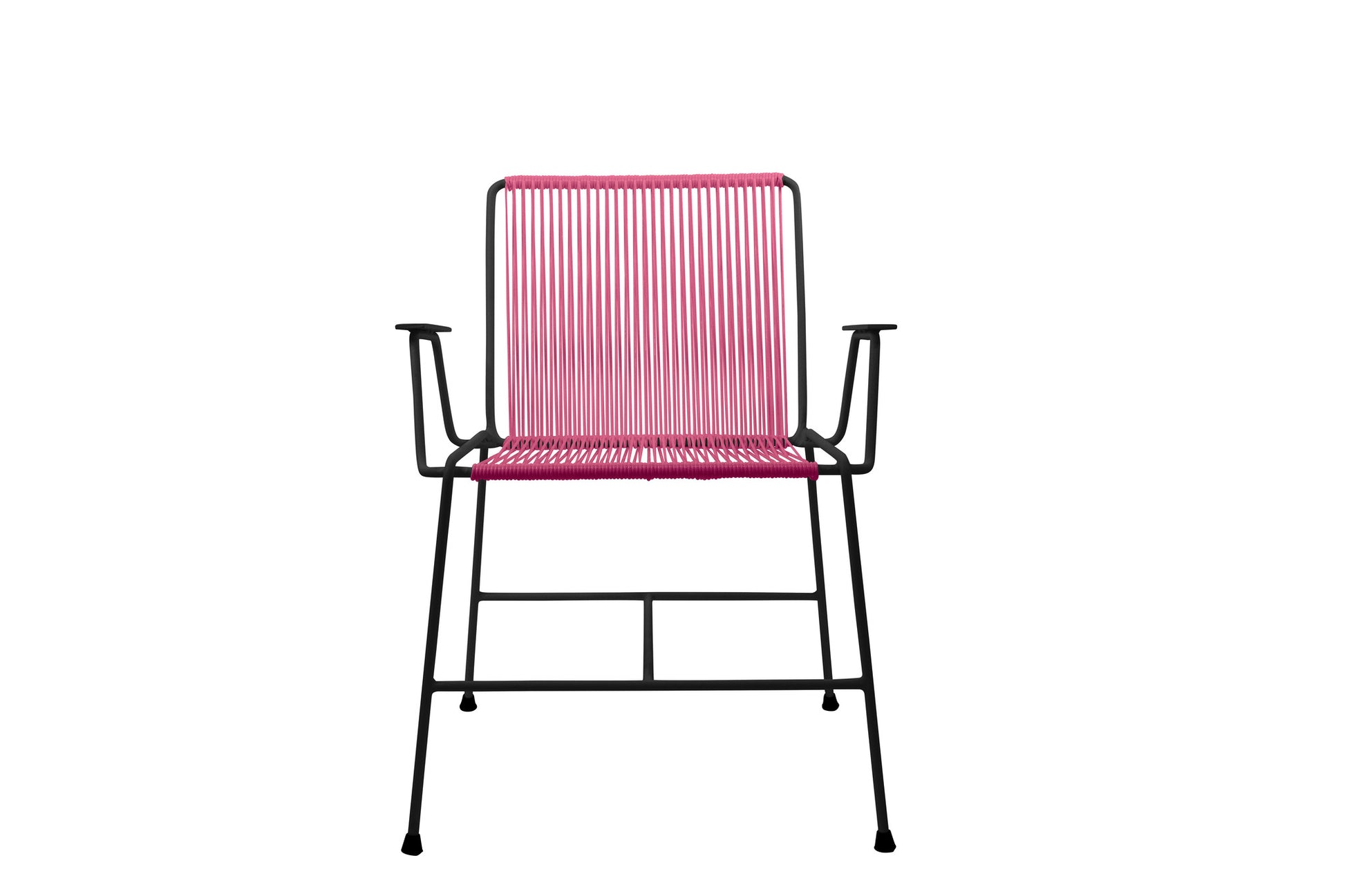 Simple. Retro. Functional. Introducing the Aztata – its sleek yet humble design is comfortable for both cocktails and dinner pries. Strong lines contrast with the airy woven vinyl, creating a sturdy and stylish chair. Outdoor spaces can also accommodate this piece as the durable vinyl will not weather in the sun. Available in 18 shades of colorfast UV-resistant woven vinyl cord and 4 durable frame finishes. Note: Chrome and copper frame finishes are suitable for indoor use only. Proudly handmade in Toronto. Please allow for two weeks delivery for the United States and Canada.