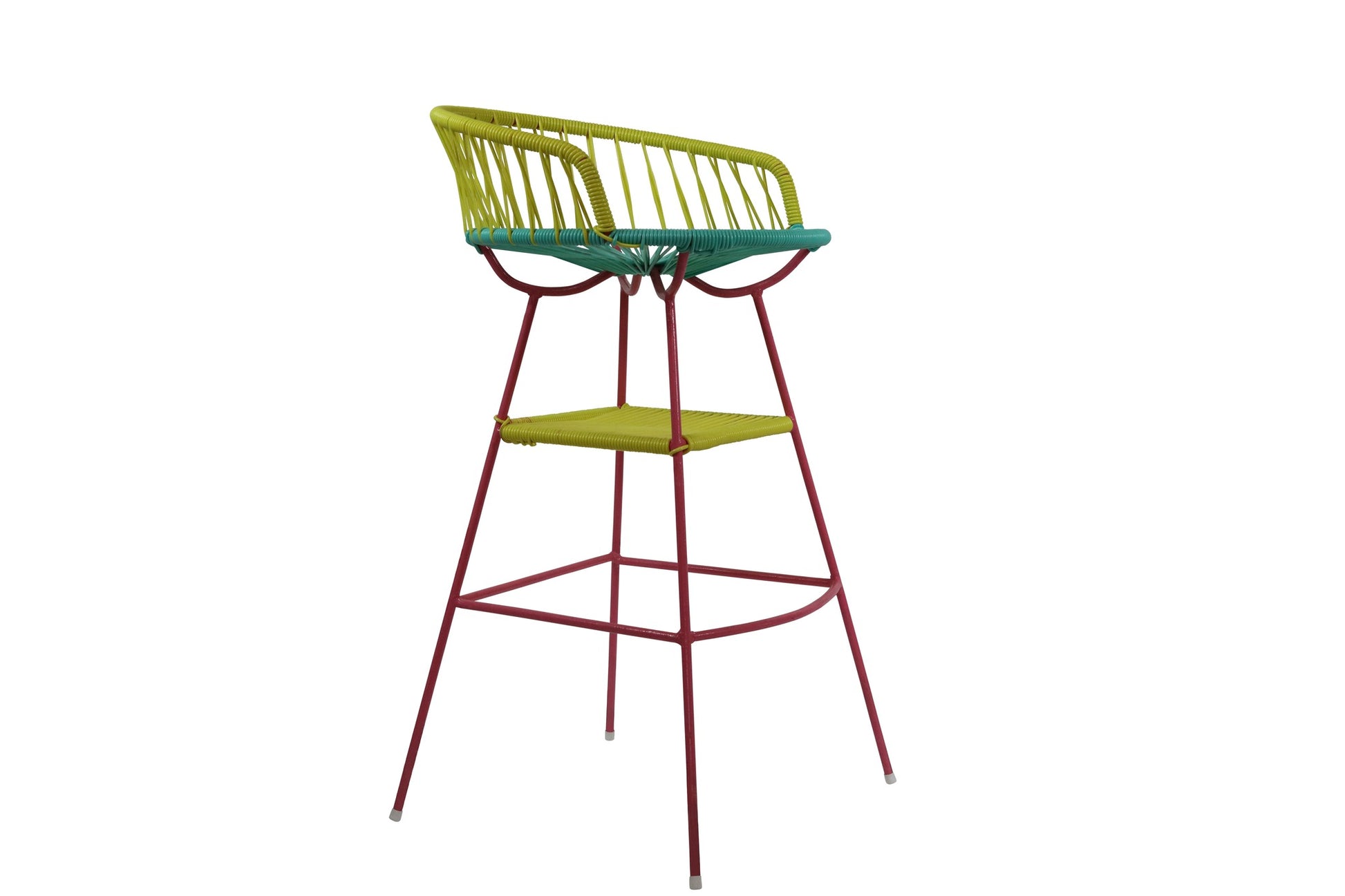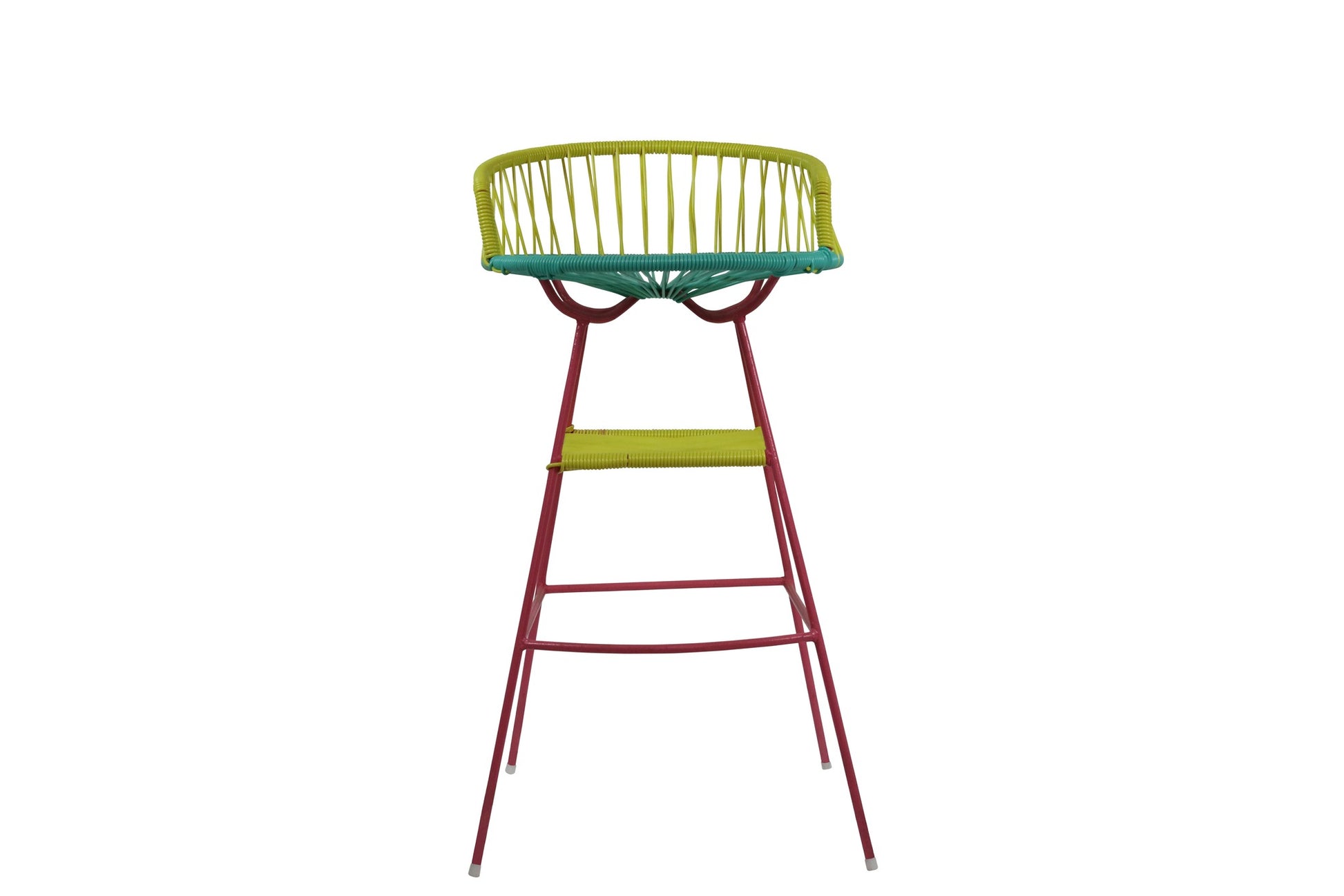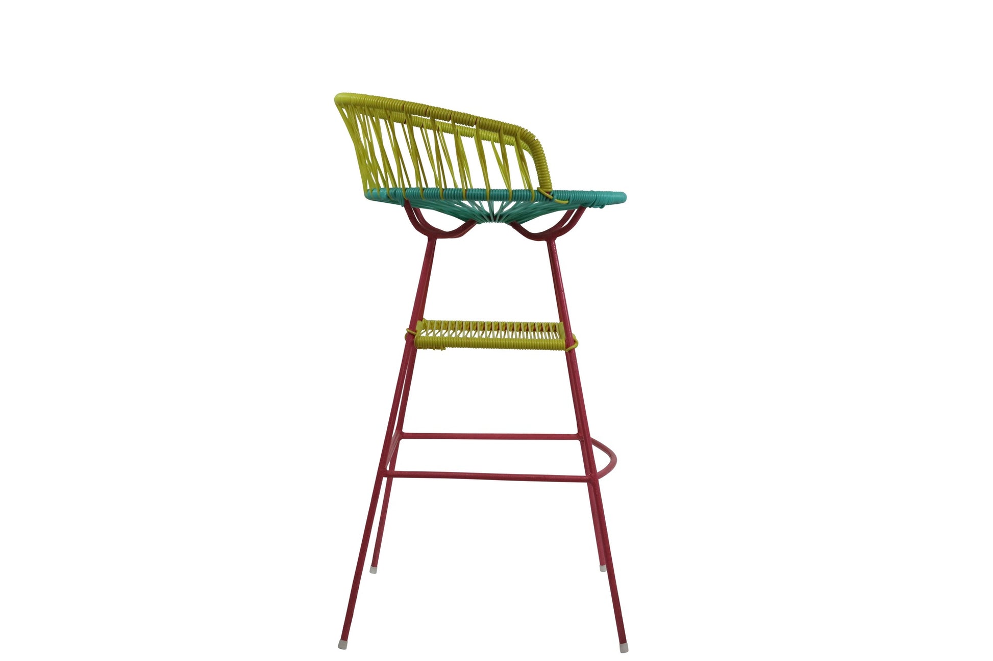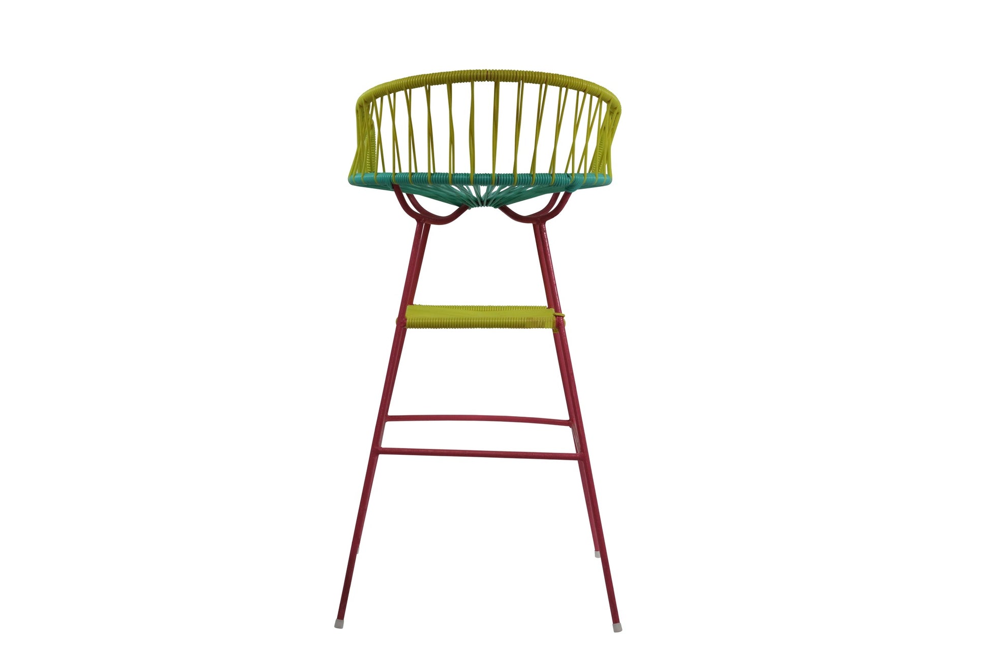 If there was a saloon on a beach, the Chelea would be the stool at the bar. This bar & counter stool brings a unique & edgy pop to your interior or exterior. Rain or shine, this chair won't weather and is incredibly easy to clean – plus it can seriously re-energize any space. Available in 18 shades of colorfast UV-resistant woven vinyl cord and 4 durable frame finishes. Note: Chrome and copper frame finishes are suitable for indoor use only. Proudly handmade in Toronto. Please allow for two weeks delivery for the United States and Canada.