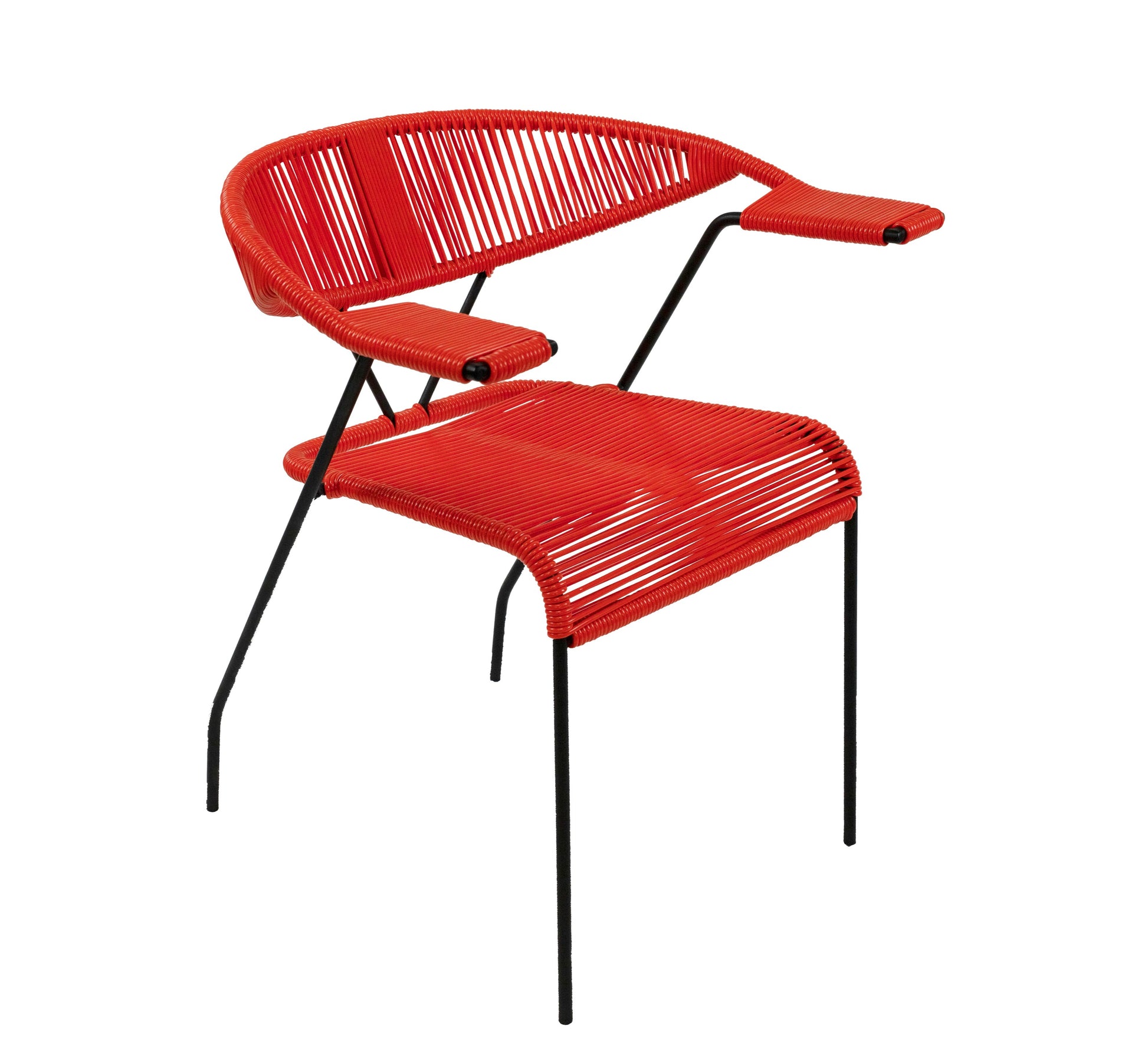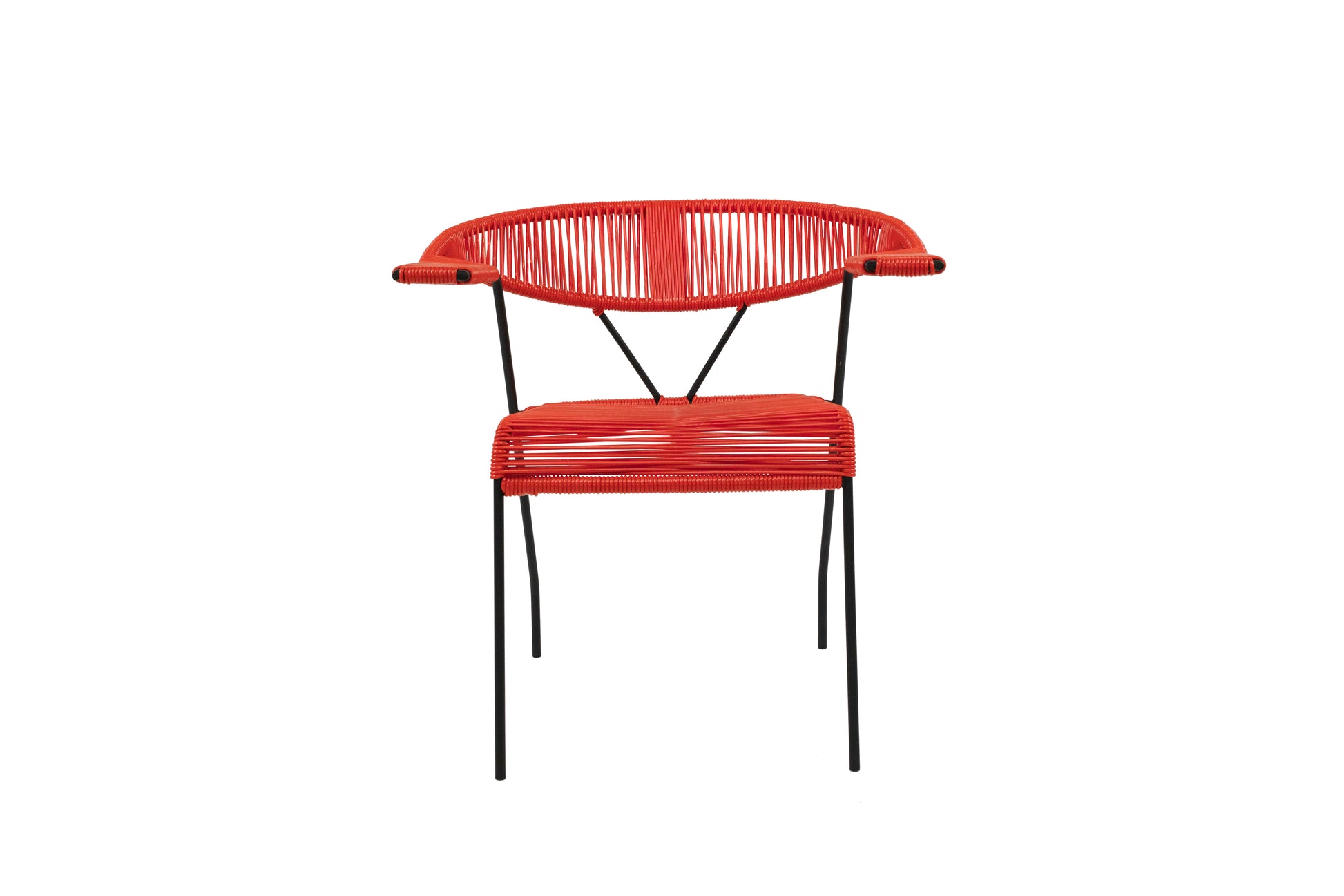 The London chair embodies timeless sophistication with its clean, geometric lines and understated elegance. Designed to be a statement piece, it provides a blend of classic charm and modern comfort. The generously sized seat and backrest offer ample room, while the sleek armrests neatly slide under most dining tables for a refined touch. Perfect for both indoor and outdoor settings, this chair features a resilient vinyl that withstands the elements without fading. Choose from 18 vibrant, UV-resistant woven vinyl cord colors and 4 durable frame finishes to match your style. Please note: Chrome and copper frame finishes are intended for indoor use only. Each chair is meticulously handcrafted in Toronto. Expect delivery within two weeks for the United States and Canada.