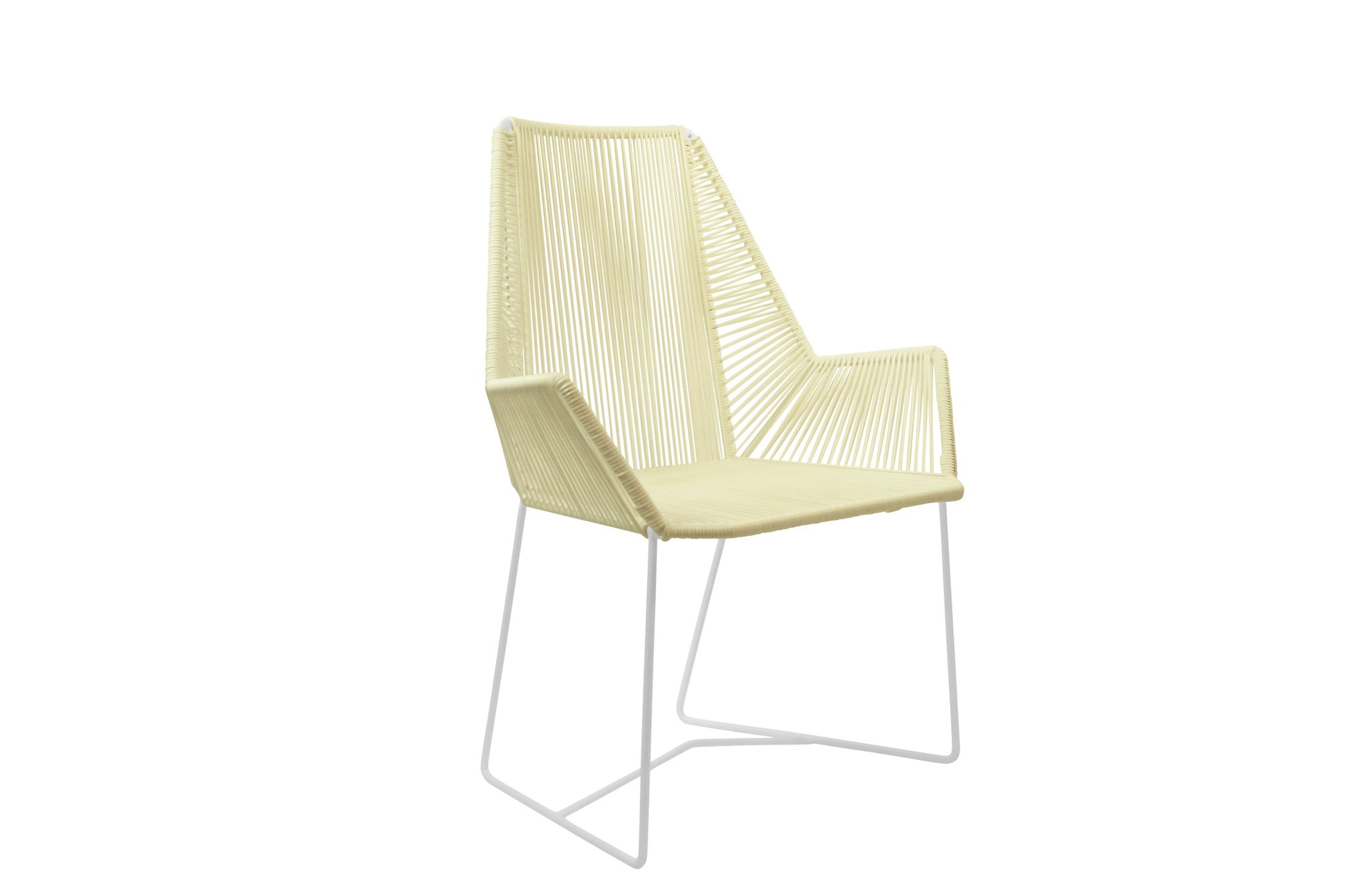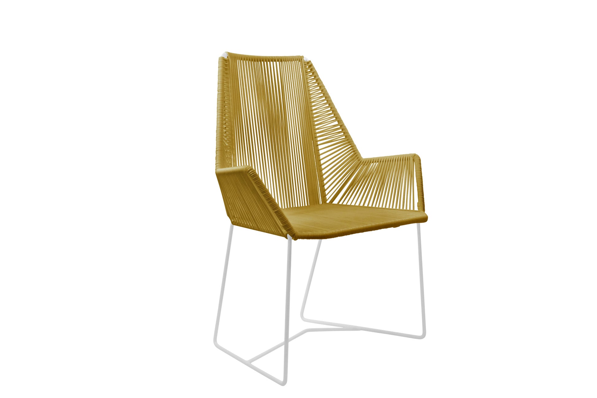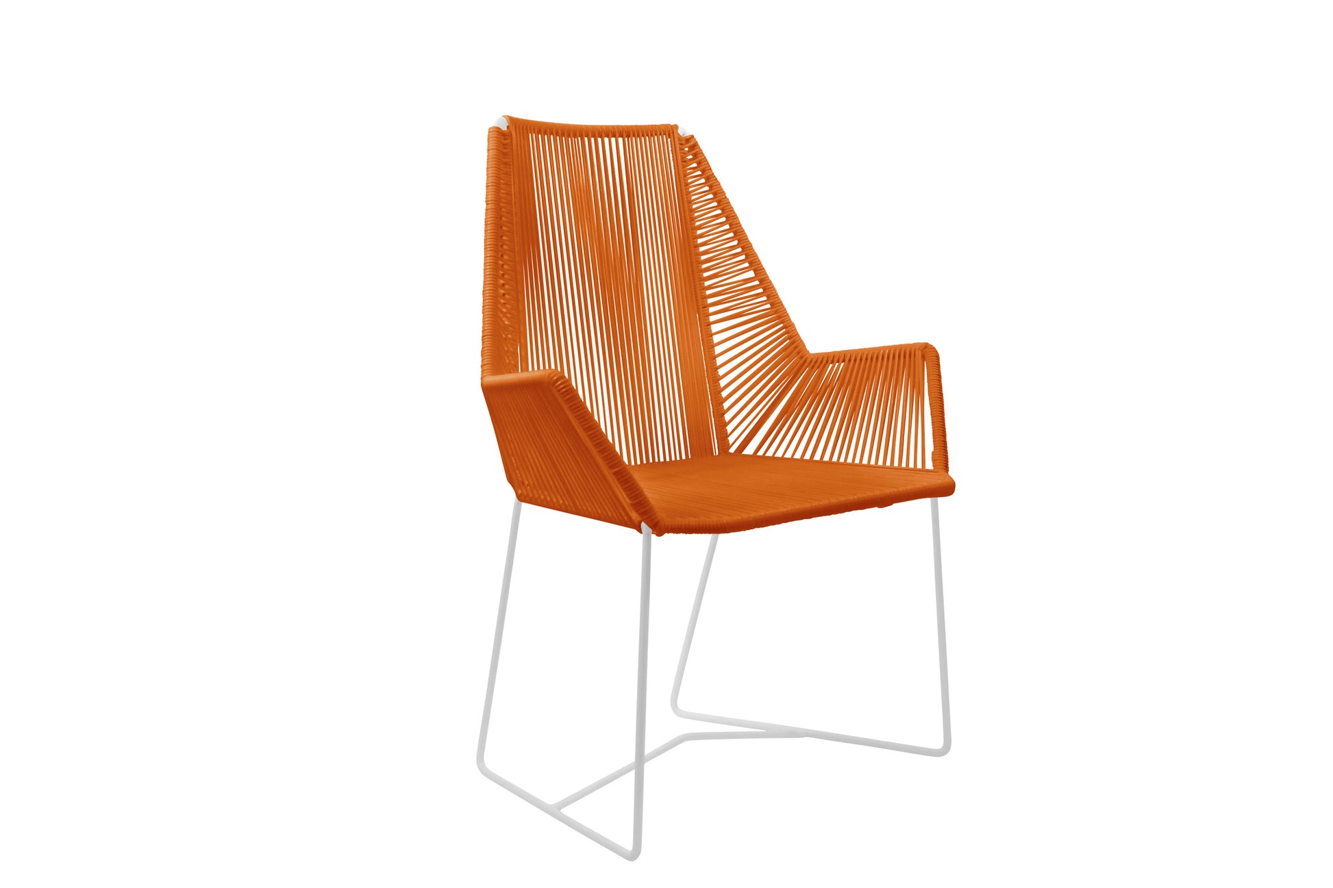 Dine in style and luxury with the new Regatta chair. This angular piece combines comfort with modernity. The low armrests tuck away neatly under most dining tables. With a wide seat and backrest this chair makes for a roomy dining experience. An outdoor space can get a serious face lift with the addition of a few Regattas. Rain or shine - this chair won't weather and it is incredibly easy to clean. Available in 18 shades of colorfast UV-resistant woven vinyl cord and 4 durable frame finishes. Note: Chrome and copper frame finishes are suitable for indoor use only. Proudly handmade in Toronto. Please allow for two weeks delivery for the United States and Canada.