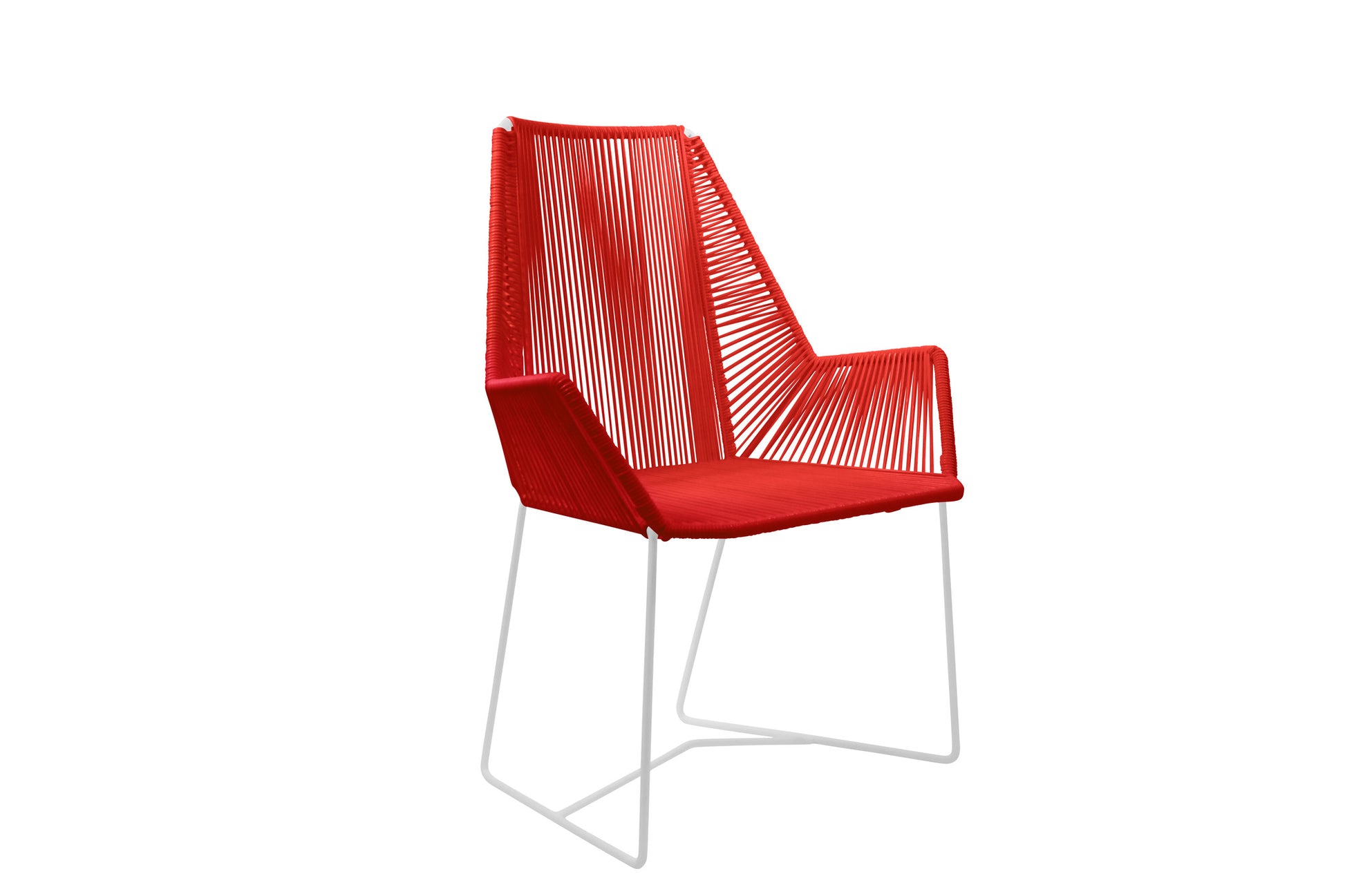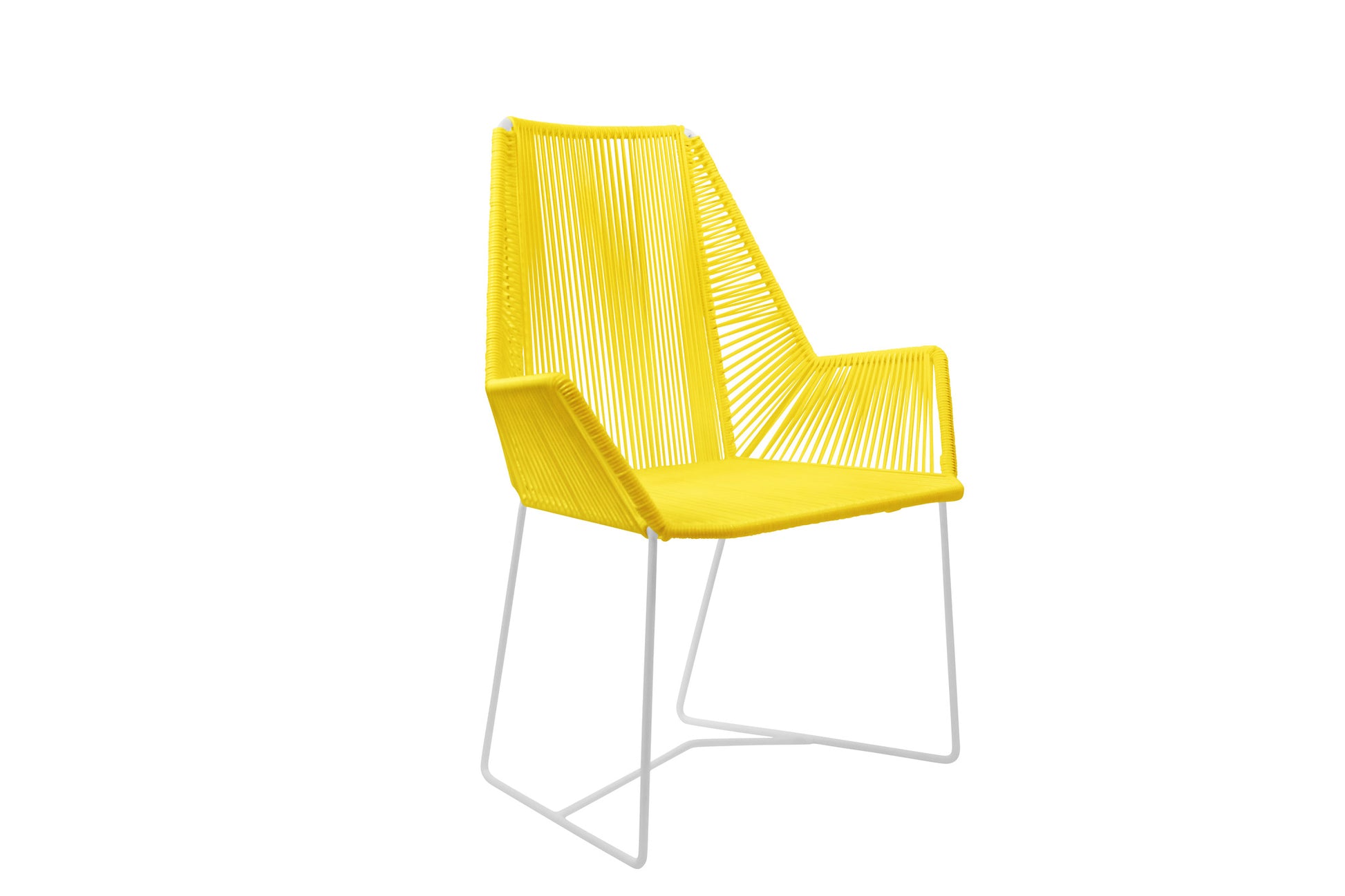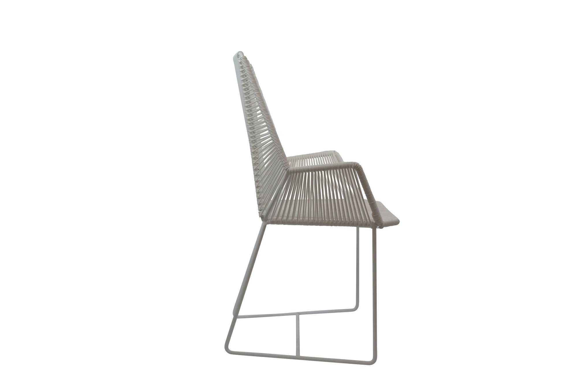 Dine in style and luxury with the new Regatta chair. This angular piece combines comfort with modernity. The low armrests tuck away neatly under most dining tables. With a wide seat and backrest this chair makes for a roomy dining experience. An outdoor space can get a serious face lift with the addition of a few Regattas. Rain or shine - this chair won't weather and it is incredibly easy to clean. Available in 18 shades of colorfast UV-resistant woven vinyl cord and 4 durable frame finishes. Note: Chrome and copper frame finishes are suitable for indoor use only. Proudly handmade in Toronto. Please allow for two weeks delivery for the United States and Canada.
