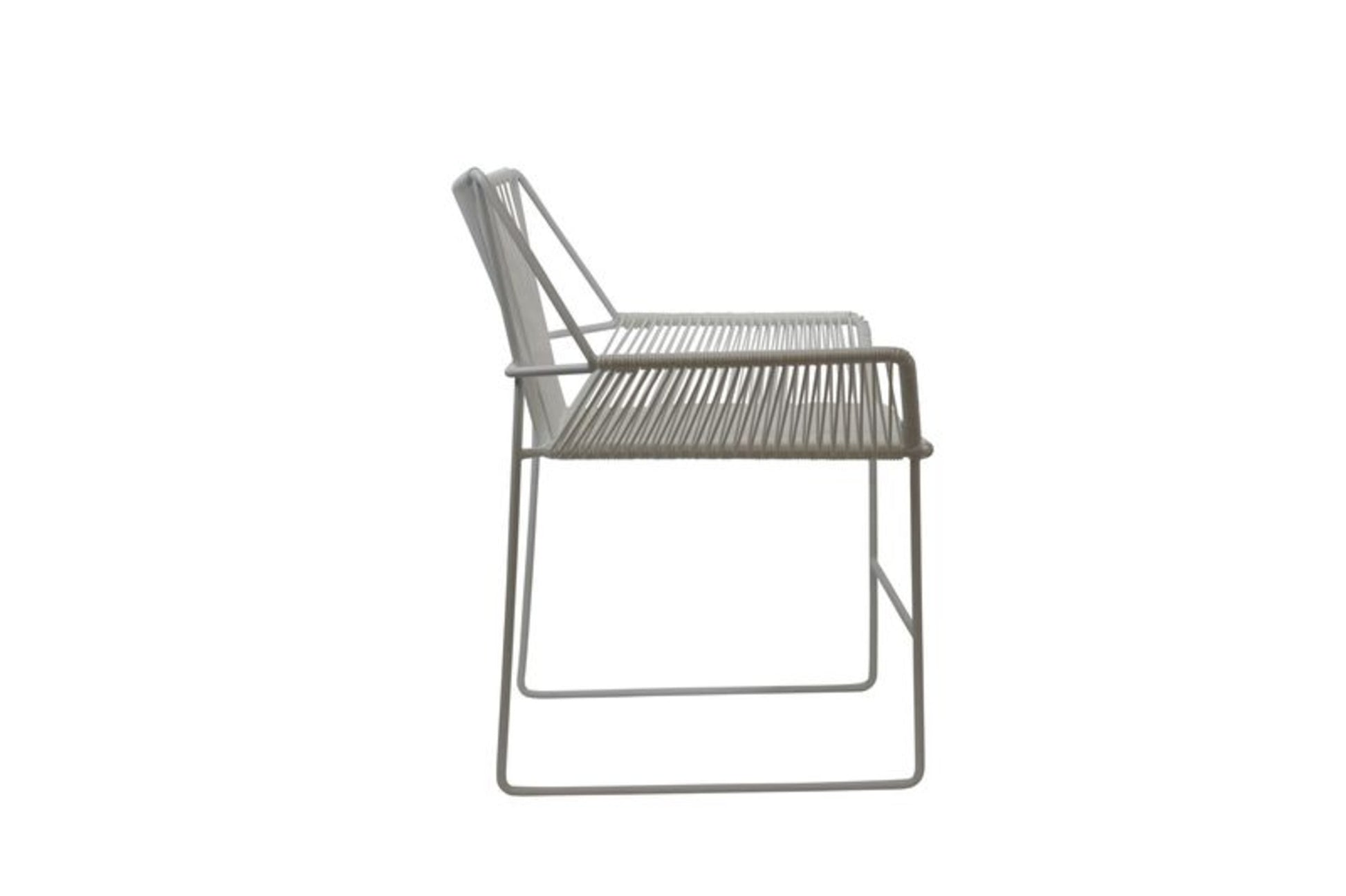 What’s up with the whaddup? For one thing it has a unique linear silhouette that you can’t help ogle. Its open arms and wide profile just beg to be sat in – and it can slide easily under most tables. The Whaddup can withstand the elements, it dries quickly after a rainfall and stays cool in the sun - even the black. Available in 18 shades of colorfast UV-resistant woven vinyl cord and 4 durable frame finishes. Note: Chrome and copper frame finishes are suitable for indoor use only. Proudly handmade in Toronto. Please allow for two weeks delivery for the United States and Canada.